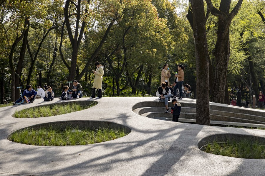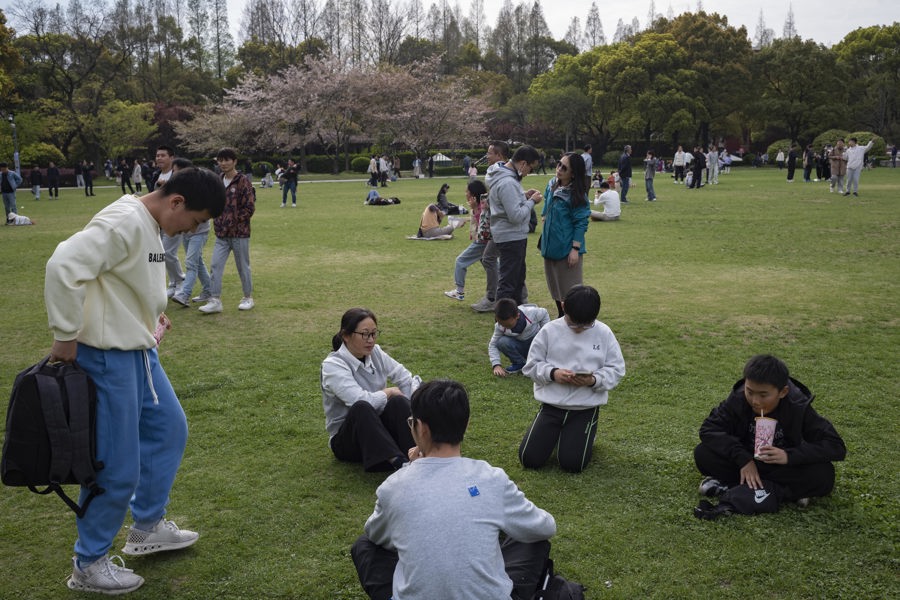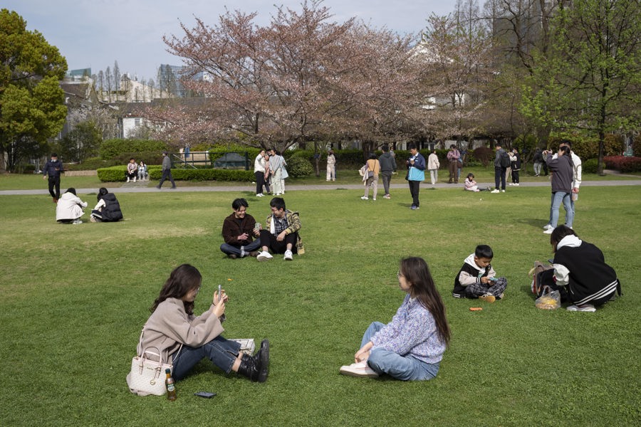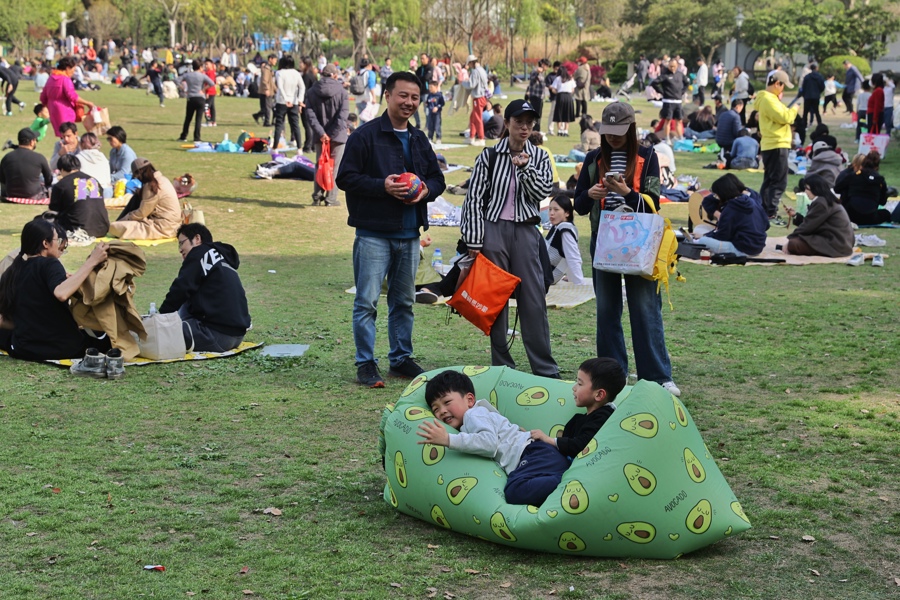 4月5日清明小长假第二天,申城气温宜人,阳光明媚,不少市民走进公园绿地,享受春光假期。