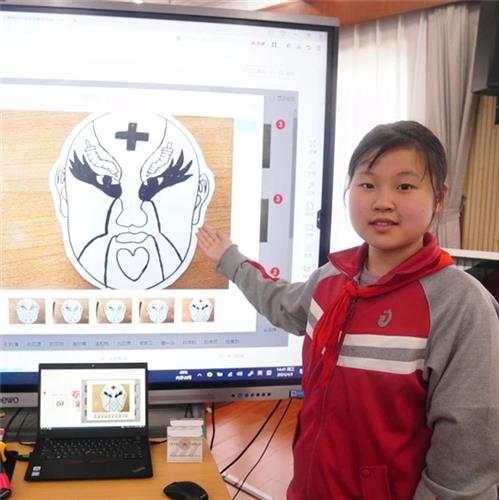本节课是本项目化学习的子问题2——怎样绘制京剧脸谱?学生进行主动探究,包老师利用三个助手让学生进行游戏闯关,激发了学生兴趣。整节课用“看戏一说戏——赏戏——画戏——唱戏”的教学活动流程,学生在看中听、说时赏、赏后画,达到会赏京剧、能画脸谱、敢演京剧的学习目标。