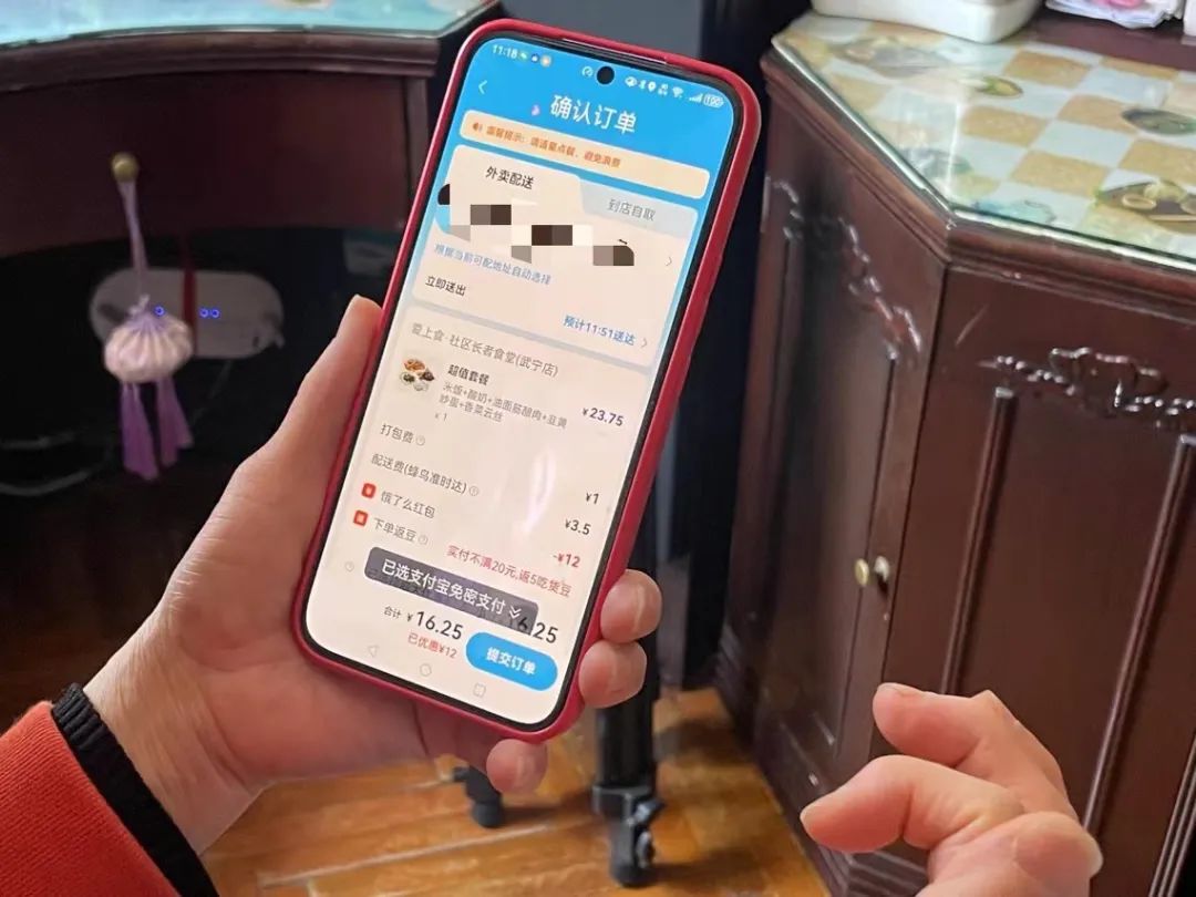 许阿姨挑选了心仪的美食套餐——油面筋烧肉、韭黄炒蛋、香菜云丝、米饭、酸奶,“饿了么”APP识别街道老年助餐补贴与平台红包优惠叠加。原本价格23.75元的套餐,结算下来只需要16.25元,其中还包含了打包费和配送费。“优惠了12元呢!划算又方便!”