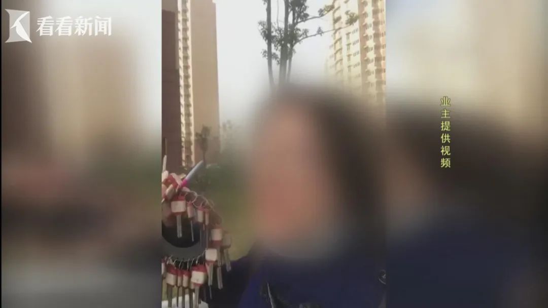 视频显示,交房前,一名女子手拿大把钥匙,在尚未对外开放的街区中邀约业主现场验房。