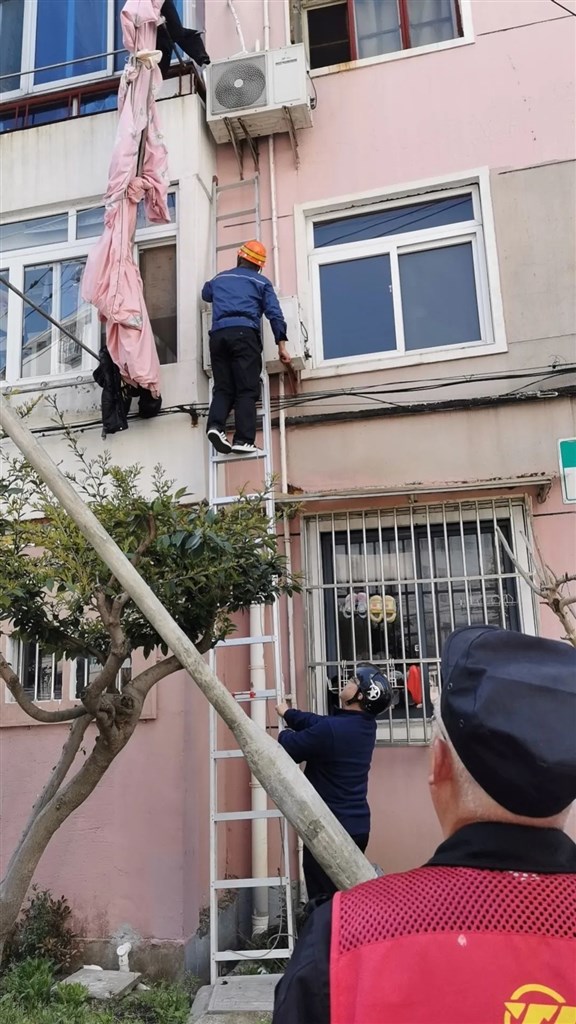 原来,居委会和物业工作人员在小区巡视中发现30号401室阳台上的晾衣杆掉落,挂在了3楼的晾衣架上,摇摇欲坠,随时有二次掉落的危险。见状,居委会第一时间联系了业主,物业工作人员进行了上报。随后,物业经理、业委会、业主都到达了现场,居委和业委会负责引导居民离开危险区域,物业师傅爬上高梯抓住晾衣杆一头,缓缓往下挪直到安全落地,快速有效地消除了隐患。风险解除后,居民对居委会、业委会、物业的快速响应和高效办事赞不绝口。