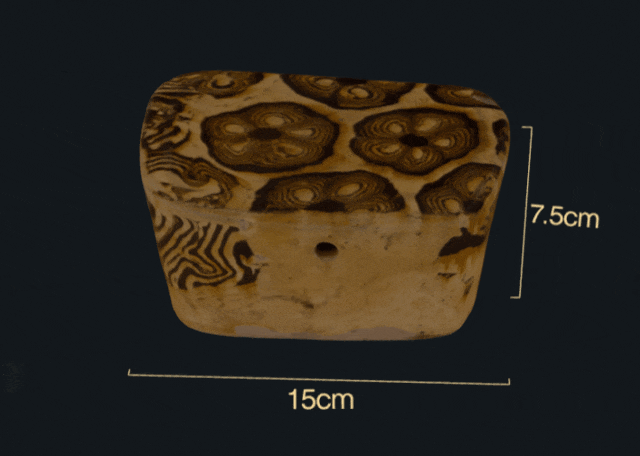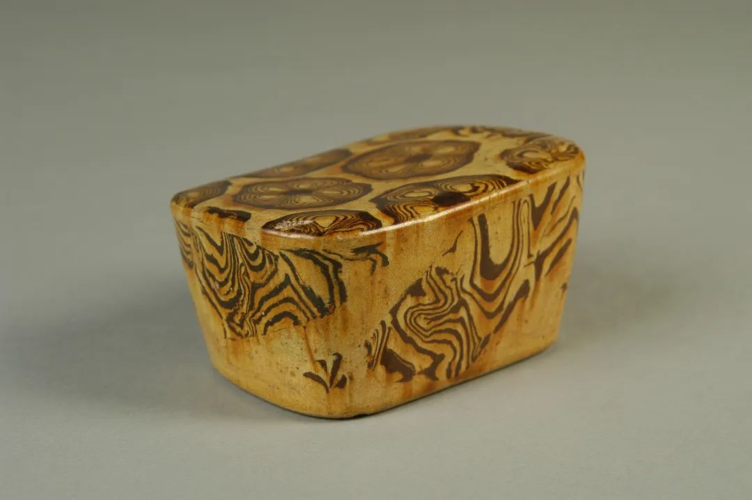 这件唐黄釉绞胎瓷枕上