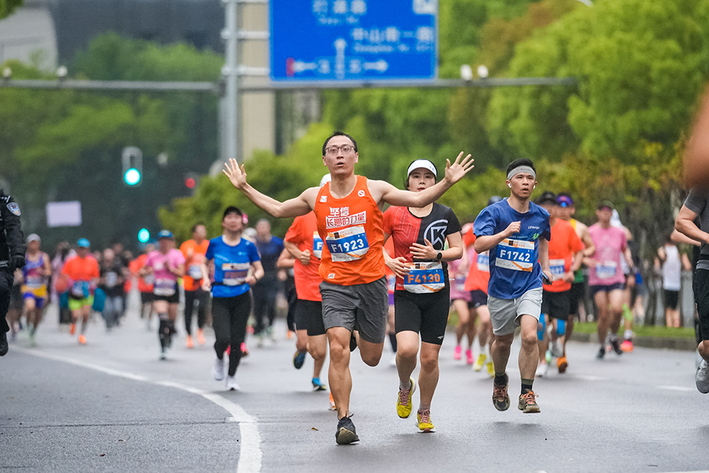 普通路跑爱好者在比赛中