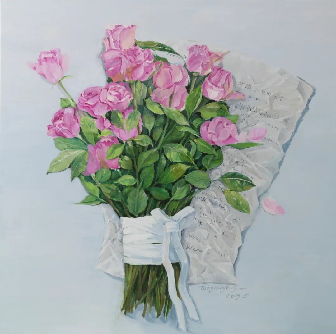 目前,《听见花开汤宁容绘画艺术展》在宝龙艺术中心展出。汤宁容从日常与之相伴的鲜花为创作母题,将江南诗性通过油画艺术的语言进行表达,从而凝练出独属于她个人的“花花世界”。