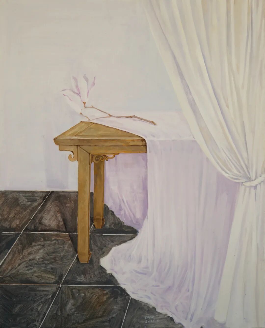 《有玉兰花的房间》2018,布面油画,80*65cm