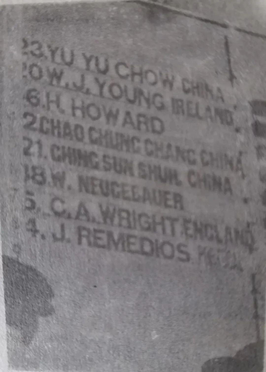 1928年万国竞走赛终点成绩布告牌,周余愚、张造寸、石金生分获第一、四、五名
