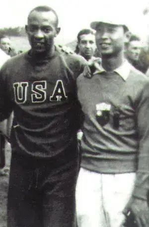 1936年,周余愚(右)与美国田径名将欧文斯在柏林奥运会上合影