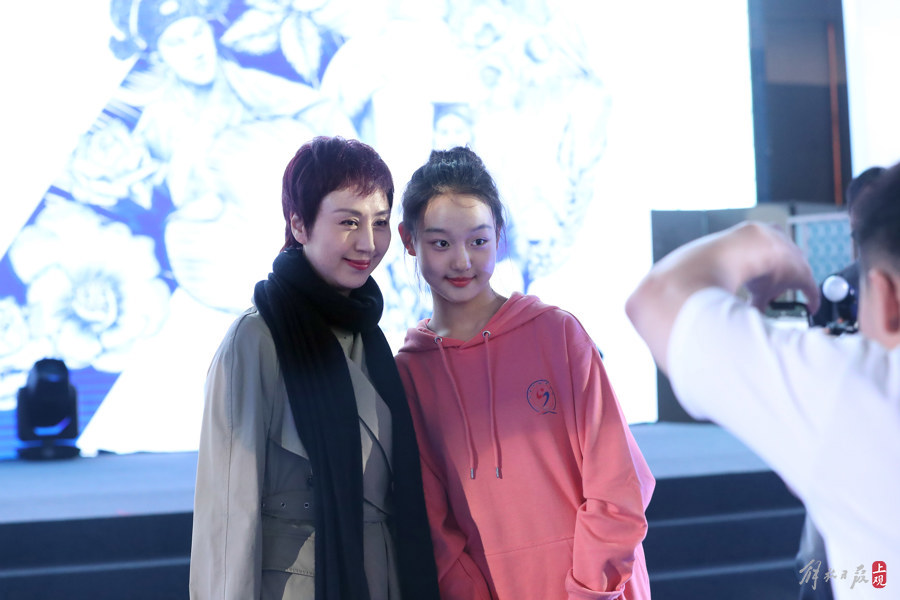 21京剧贯通班班主任张帅为台上的师哥师姐和自己学生的表演叫好,休息间隙还帮学生与她的偶像合影。