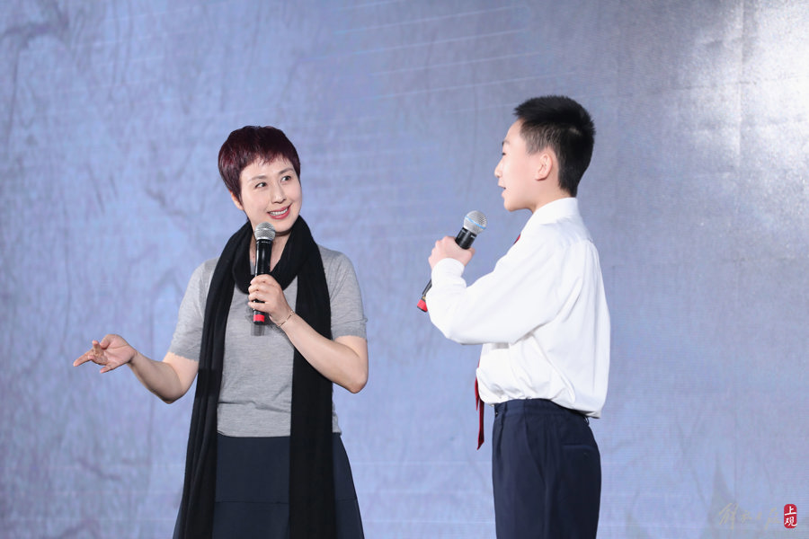 校友史依弘带着戏曲学校学生邵伟辰演唱《坐宫》。