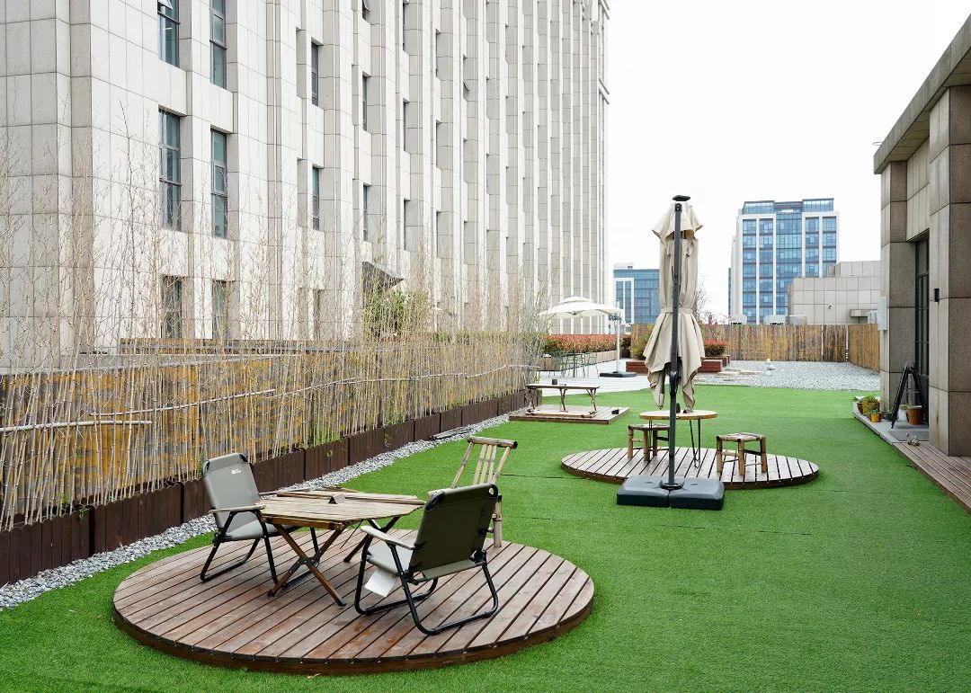 园区在打造人才公寓时,特别关注年轻人的需求。一楼商业区引入的撸猫馆,公寓内配备的猫爬架,满满的宠物友好氛围;镶嵌在大楼内各处的小微型会议室、洽谈室,以及封闭式的电话亭工作间,兼顾社交和个人隐私;“春分”“小满”等以节气命名的工作区域,露台、绿化带内栽种的秀逸蓬勃的一片片绿竹,与园区“易园”的“易”一脉相承;分布在园区各处的“七重花园”、绿地上的露营区、5000平方米的洛克体育公园、共享书吧……这里的一切都完美契合了年轻人追求舒适、适度社交的需求。