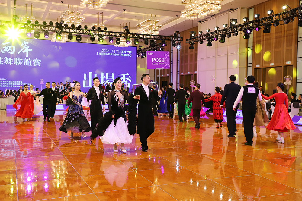 4月21日,2024首届海峡两岸国际标准舞联谊赛在上海前滩香格里拉大酒店隆重举行。本次活动以“海峡共舞·两岸同心”为主题,来自两岸的嘉宾和国标舞爱好者400余人齐聚一堂,共襄盛举。