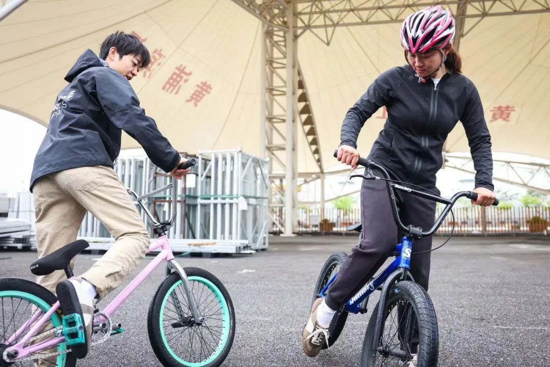 4月23日上午,这场关于小轮车运动的“临时教学”在奥运会资格系列赛·上海所在的黄浦滨江展开。尽管未能前往竞赛场地现场体验,但经过短短半小时的“教学”,前来探营的钟天使已然萌生了兴趣:“自由式小轮车是一个我们发展很快、成绩进步很快的项目。非常期待我们中国选手能够顺利拿到奥运会资格,在这场比赛中积累更多的经验,未来在巴黎奥运会实现突破!”