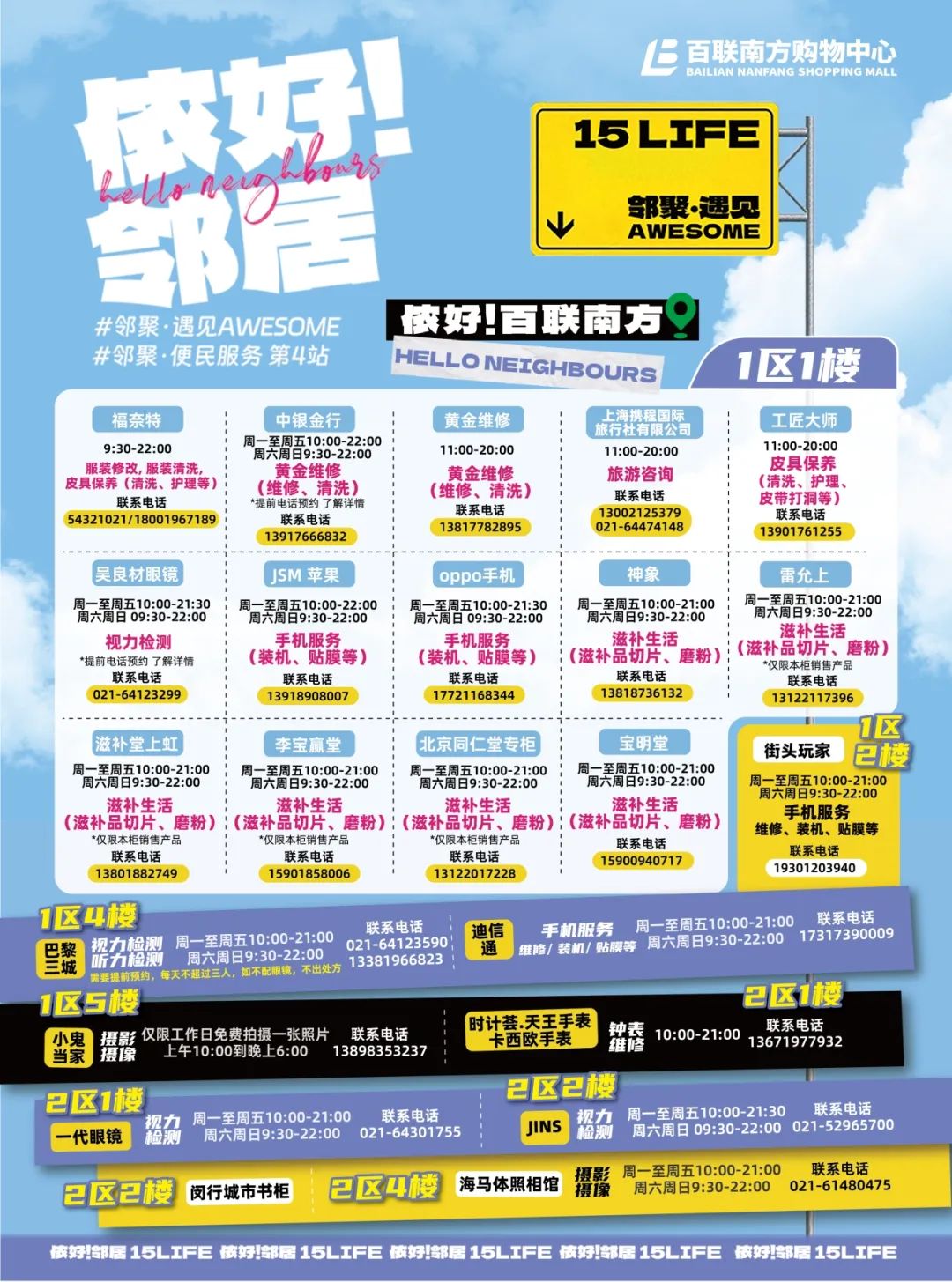 “侬好邻居”创意便民市集来到百联南方购物中心,将会为居民们带来各种休闲小憩活动和便民福利。