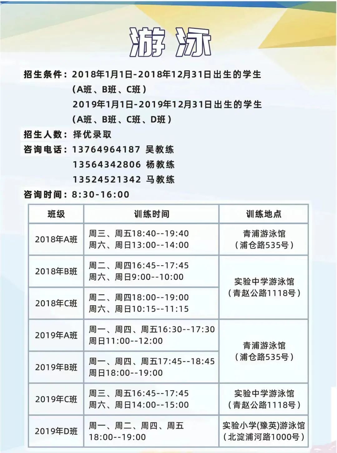 静安区跳水启蒙班、
