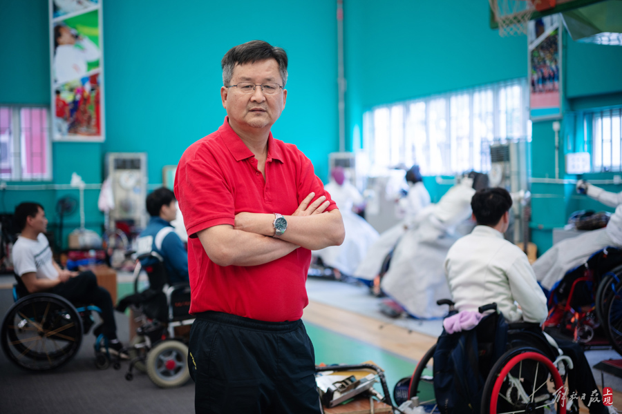 上海队主教练孔令森同时也是国家队主教练。从专业运动员到执教健全人运动员,再到指导残疾人击剑队,他借助专业的训练方法和丰富的经验,带出了一批批优秀的运动员。今年他已经68岁,依然精神强健,奋斗在训练工作的第一线。