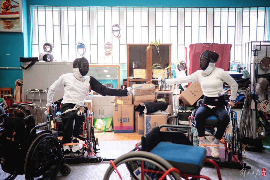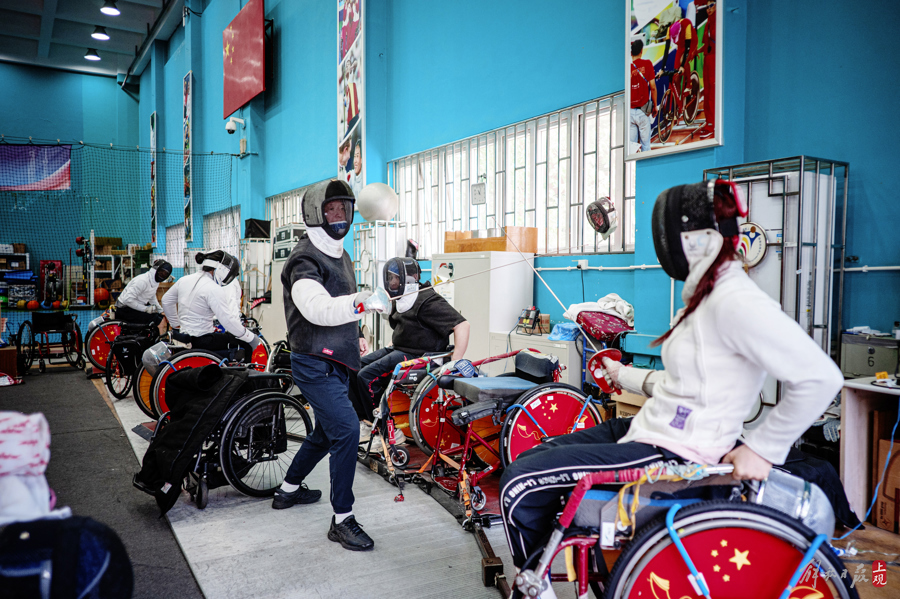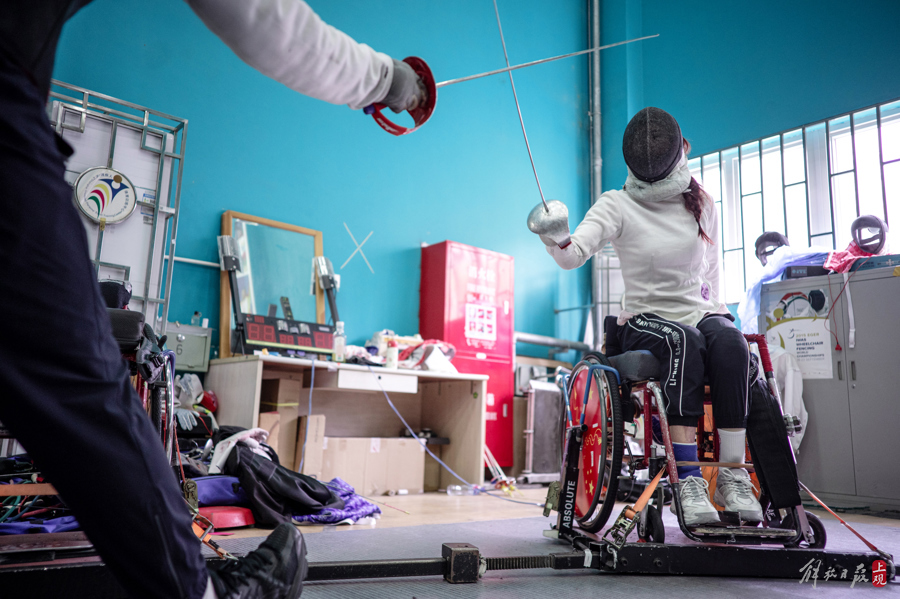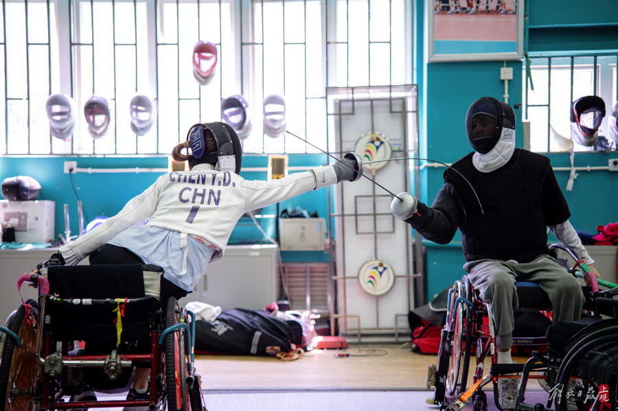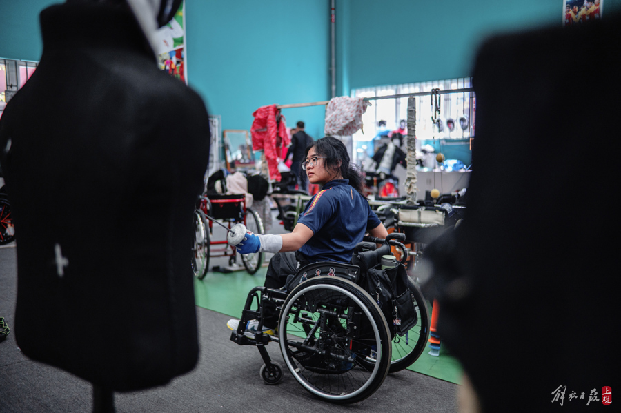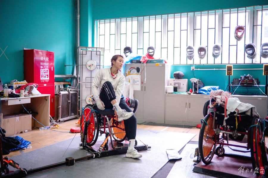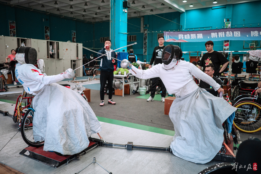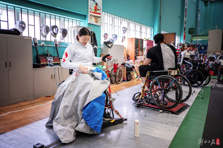和许多运动项目一样,轮椅击剑的日常训练里“男带女”是常态。无论是男性教练还是运动员,都很乐于做女运动员的陪练,更高强度的对战有利于提升女运动员的成绩,这也是上海女选手在轮椅击剑的多个项目上有着争冠的强劲实力的秘诀之一。