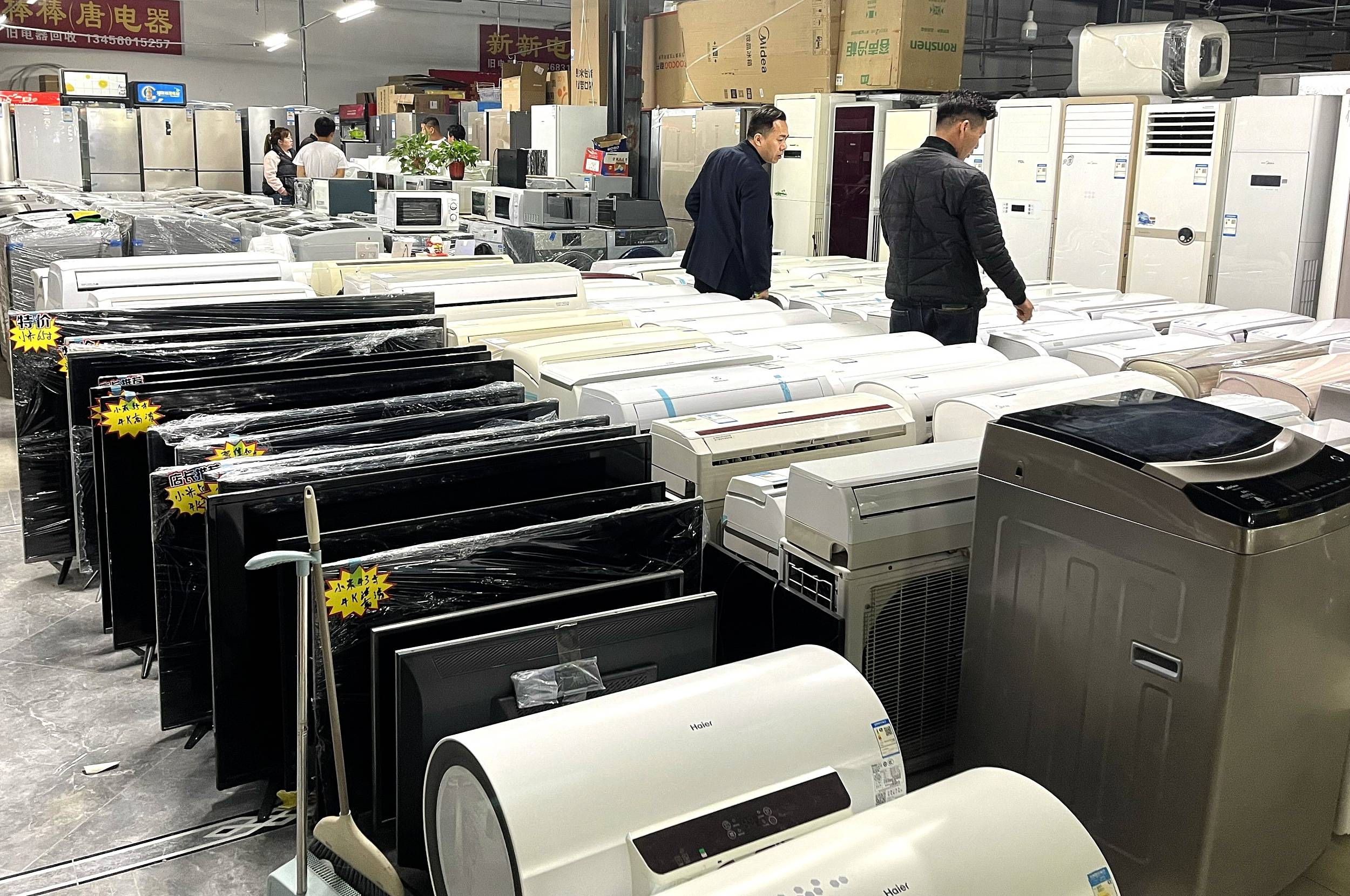 2024年4月5日,河北廊坊,建材市场内回收的旧家电。视觉中国 图