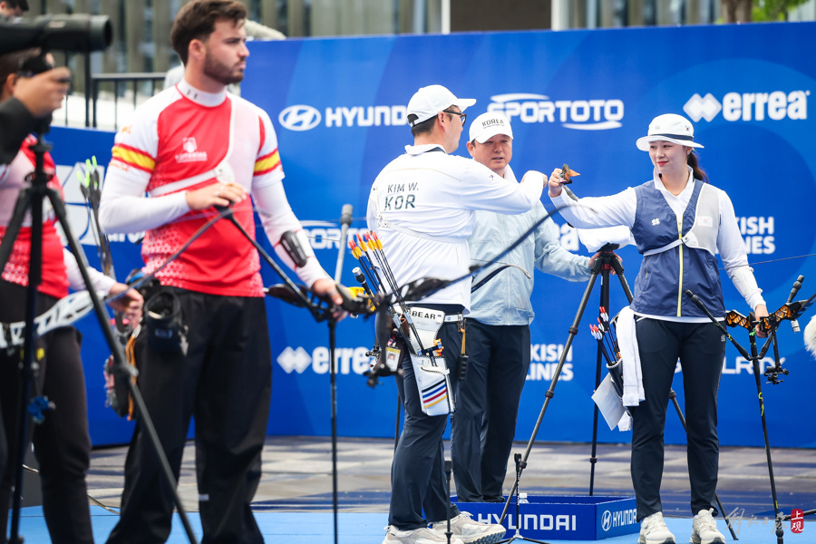 反曲弓混合团体金牌决赛,韩国队对阵西班牙队。