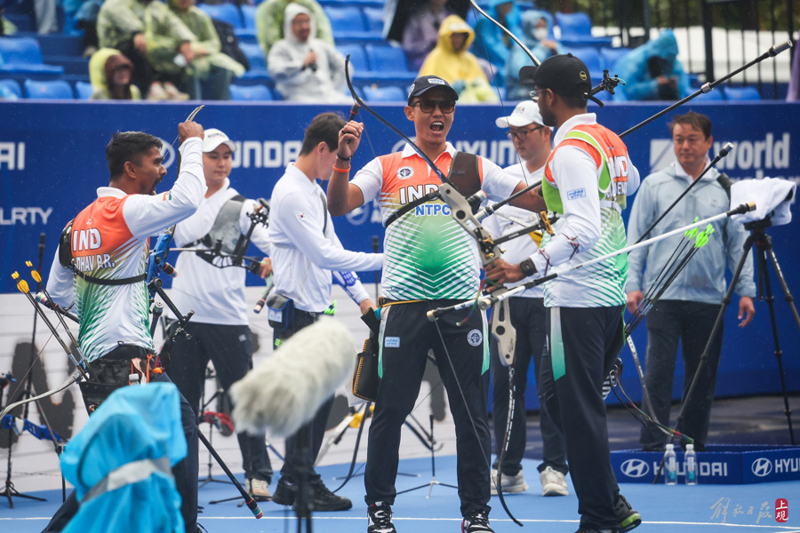 男子反曲弓团体金牌决赛,印度队夺得该项目冠军。