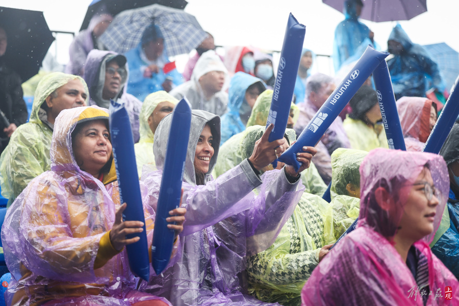 当国歌在赛场上奏响,中国女子射箭队的队员们难掩激动之情,李佳蔓流下泪水。