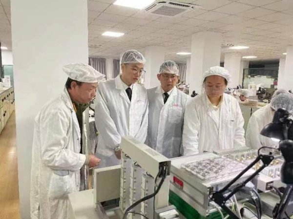 图说:黄浦海关关员对汉辰表业开展现场调研,帮助企业首次实现出口。祁舒铭 摄(下同)
