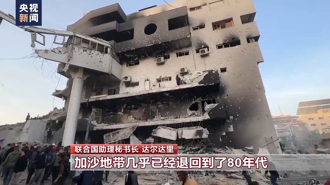 联合国助理秘书长 达尔达里:加沙地带5%的人口死亡或严重受伤,在短时间内造成这样的伤亡是前所未有的。我们知道,加沙地带大量的中小学和大学已经被完全或部分摧毁,以至于我们可以说,加沙地带已经不存在教育系统,也不存在基础和上层设施了。加沙地带几乎已经退回到了80年代,就是说,过去20年在巴勒斯坦以及过去40年在加沙地带,对人类发展的所有投资已经全部付之东流了。