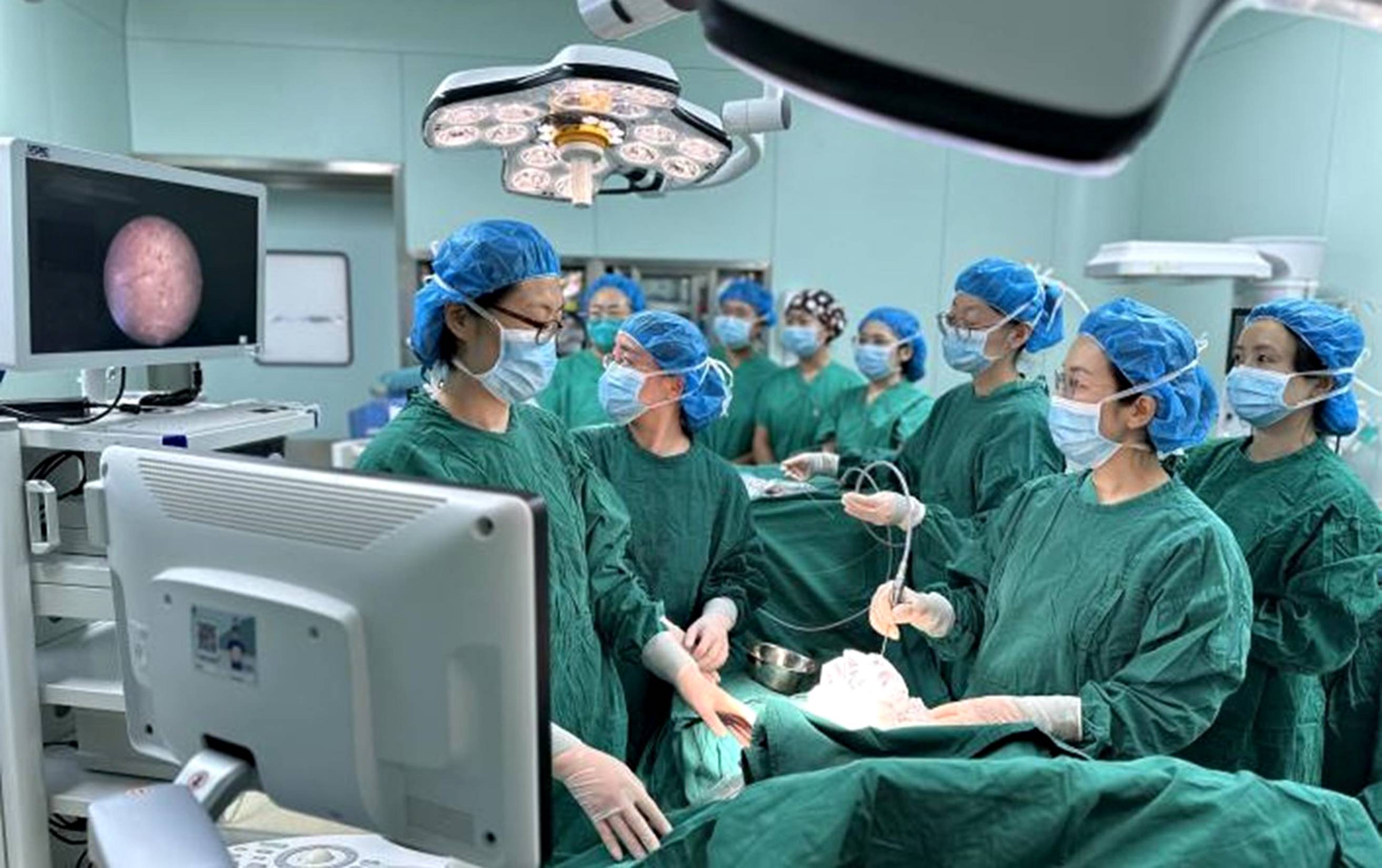 王彦林及其团队为这名孕产妇开展“无心胎”的射频消融减胎术。(均为 中国福利会国际和平妇幼保健院 供图 )