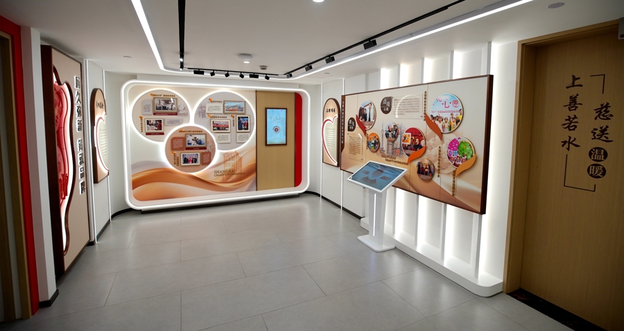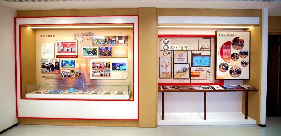 上海市慈善基金会慈善展示厅总面积近400平方米,由序厅、历程区、专题区、愿景区四个部分组成。