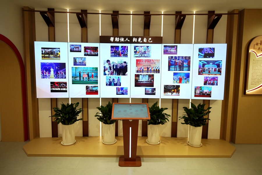 “序厅”既是出入口,也是爱的始发地,设有慈善宣传大屏和慈善爱心接待窗口,同时也设置了数字慈善体验区,让观众通过抽取“数字慈善盲盒”参与慈善,有效激发观众的感知体验与互动热情。