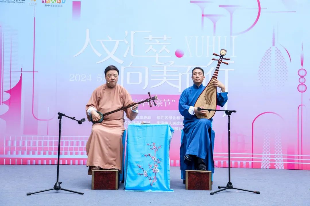 演出中,各类节目精彩纷呈,但最让现场观众印象深刻的莫过于上海吴韵评弹团带来的原创短篇弹词《生死之交》。作为田林街道文化服务的特色品牌项目,“吴侬雅韵”评弹项目自2002年成立起,始终邀请高水平团队为社区听众提供高质量的演出,满足评弹爱好者们对评弹艺术文化的需求。
