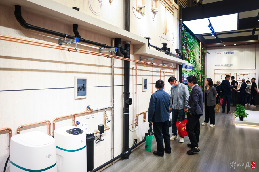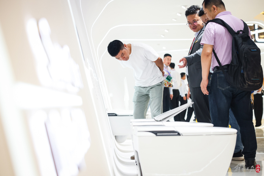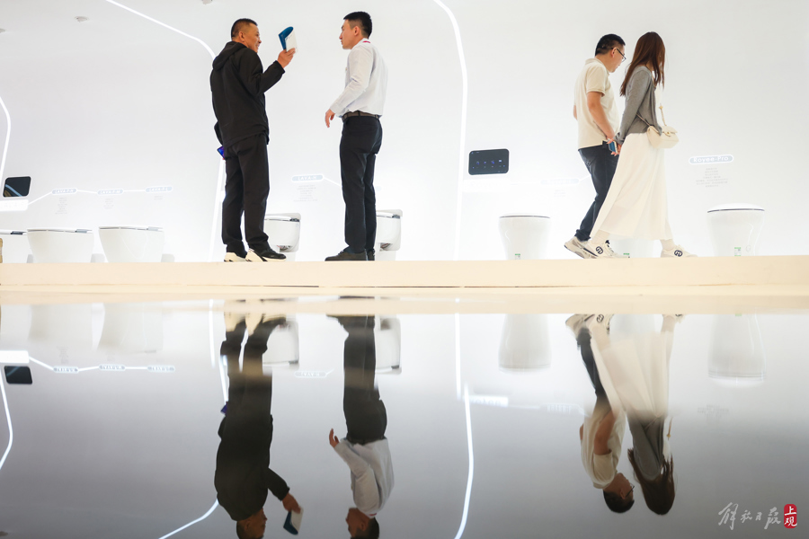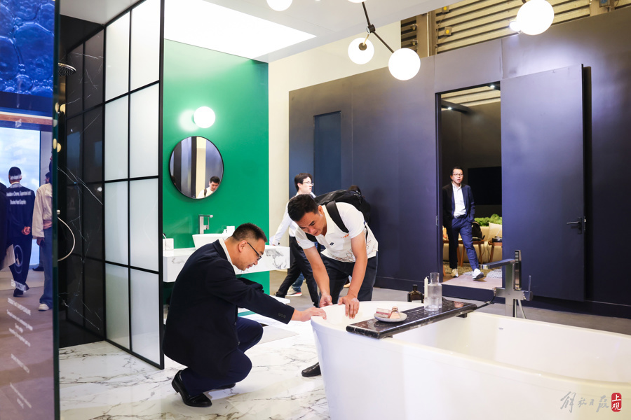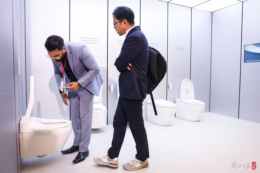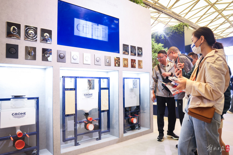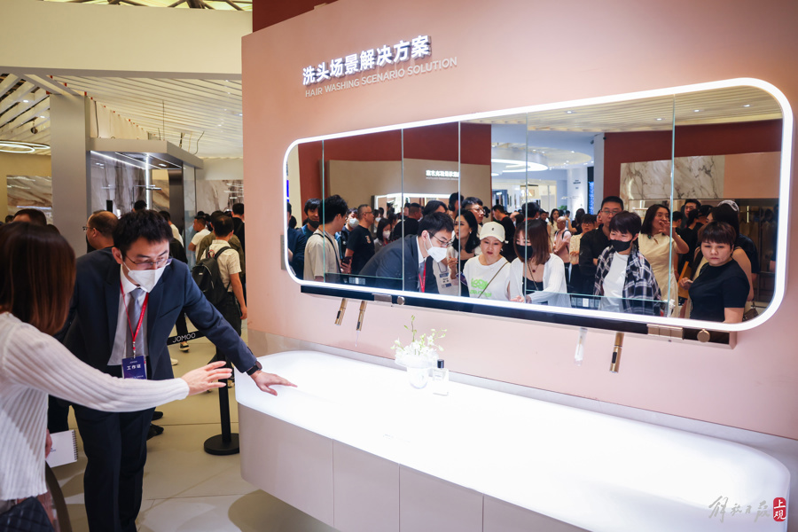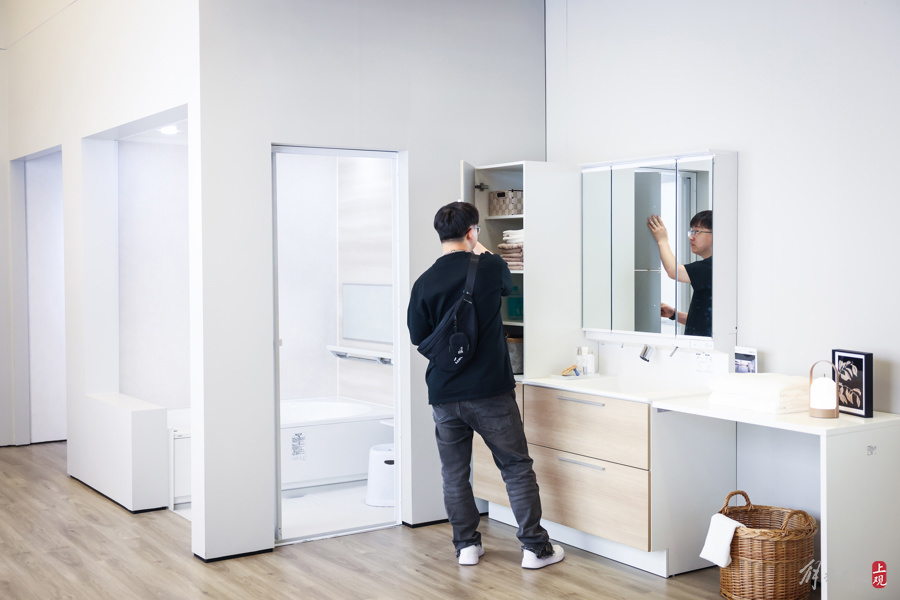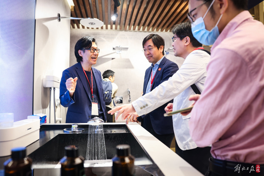一系列兼具个性化与高品质的骊住水科技集团卫浴与家装产品,吸引参展观众驻足了解。