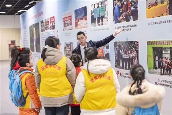图说:在“上海奶奶”沈翠英公益慈善十五年回顾展上,朱纪扉向小记者介绍奶奶的故事 受访者供图