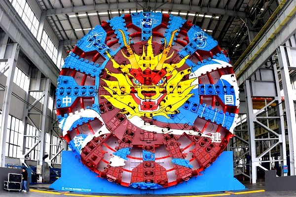 图说:涂装“神龙”的“定海号”盾构机  张玺 摄
