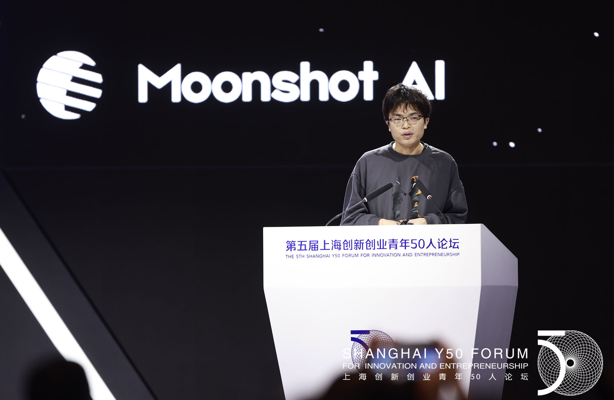5月18日上午,第五届上海创新创业青年50人论坛上,Moonshot AI月之暗面创始人杨植麟作为演讲嘉宾出席。主办方供图