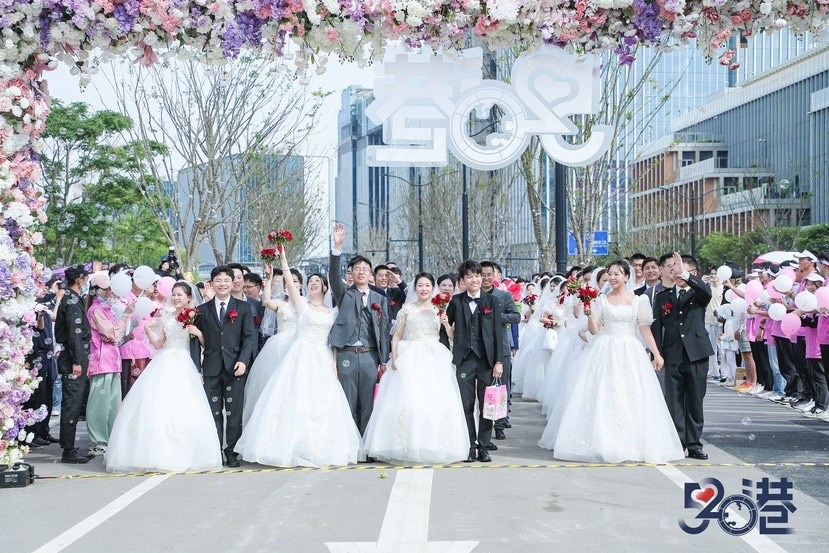春意盎然、繁花似锦。5月19日下午,在风景如画的滴水湖畔,主题为“让热爱成就挚爱”的临港青年沉浸式集体婚礼盛大举办。此次活动汇聚了100对工作、生活在临港的新人,他们共同许下白首之约,用集体婚礼的形式,为爱情减负、为幸福加码,奏响了美好生活的冲锋号。
