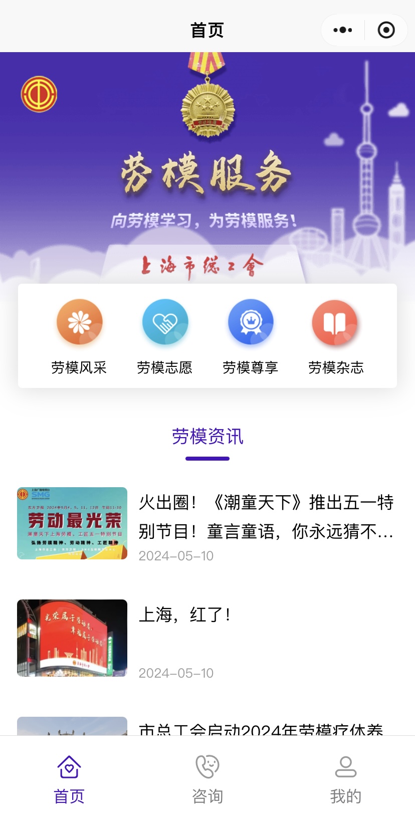 5月19日,“上海劳模服务”小程序在市总工会官方微信“申工社”上线,首批启动40项“劳模尊享”服务,这也是全国首个综合性劳模工作平台。