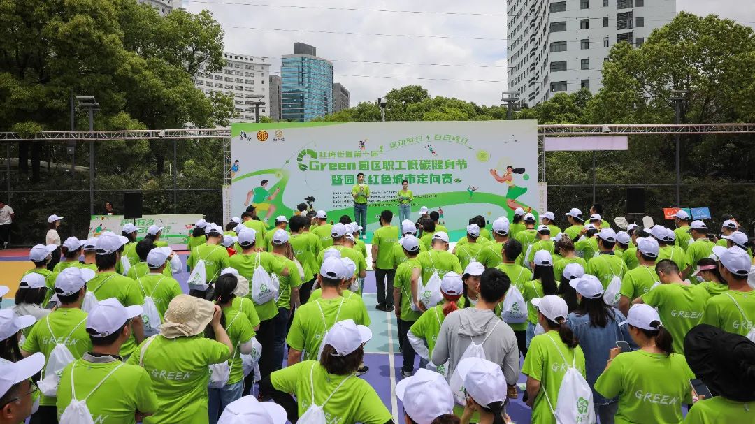 5月20日中午,徐汇区虹梅街道第十届Green园区职工低碳健身节暨园区红色城市定向赛,在漕河泾开发区公园内篮球场鸣笛开启。