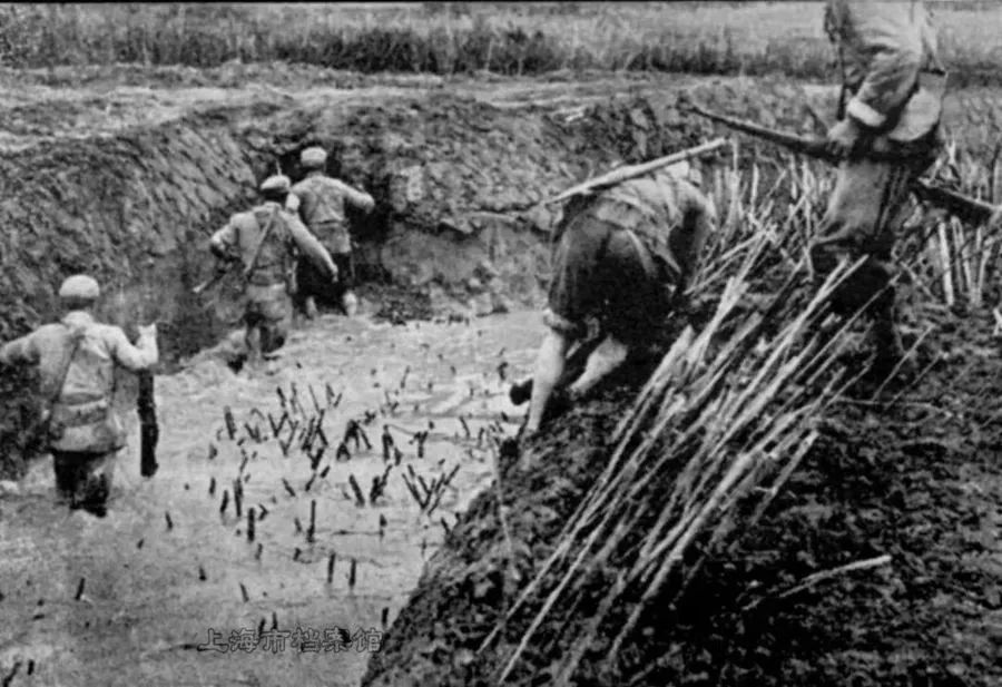 破除鹿砦,越过深水壕沟,向敌军地堡冲锋(上海市档案馆藏)