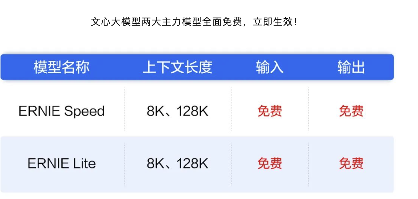 字节和阿里云大模型大幅降价后,百度两款主力大模型宣布免费。