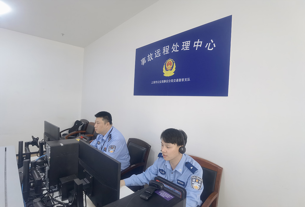 事故远程处理中心内民警在接线。 上海市公安局交警总队 供图