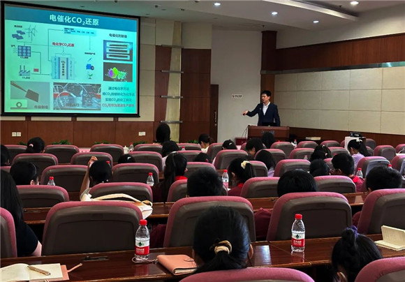 第二个讲座由国家重点实验室的金锡雄助理研究员给大家带来的《从光合作用到碳中和——催化世界的过去、现在和未来》。金老师将我们带入了催化世界,从最常见的光合作用谈起,解释了各种能改变化学反应速率而不影响化学平衡的作用的催化剂。重点说明在碳达峰、碳中和的进程中,世界各国的科学家们正在研究如何把二氧化碳充分利用,转换成其他的能源。