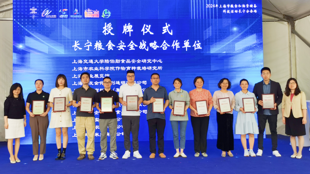 活动中,上海交通大学陆伯勋食品安全研究中心、上海市农业科学院作物育种栽培研究所、上海农业展览馆、上海良友金伴便利连锁有限公司、上海农工商超市(集团)有限公司、上海联华超市股份有限公司、蜀海(上海)供应链管理有限公司、上海统一企业饮料食品有限公司、上海洋帆实业有限公司、上海宁圣农业有限公司、上海天谷米业有限公司等11家企业(单位),获颁“长宁粮食安全战略合作单位”授牌。这批企业将发挥各自优势,共同助力长宁粮食和物资储备保障及长宁粮食安全工作推进。