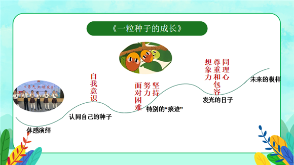 从生活探索空间出发,融合劳动教育,聚焦绿植,激活学生内在成长动力,将学生的成长和大自然中种子的成长变化进行科学关联,推出以播种、破土、茁壮成长、开花结果为具象的学生社会情感能力培养。通过四格漫画的创造性表达,让学生从种子的成长延伸到自我的成长,透过“一粒种子的成长”,看到自己成长变化的点滴!