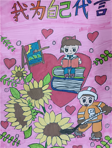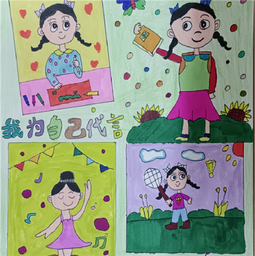 “我为自己代言”主题绘画征集活动旨在激励学生以自己的兴趣、爱好、特长为基础,创作出能够代表自己的画作,并在其中融入创意装饰元素。同时,鼓励学生们思考如何以健康快乐的方式成长。通过这次活动,孩子们的创造力和想象力得到了充分的展现,他们的作品不仅个性鲜明、充满活力,而且还锻炼了他们的自我表达能力和社交技巧。