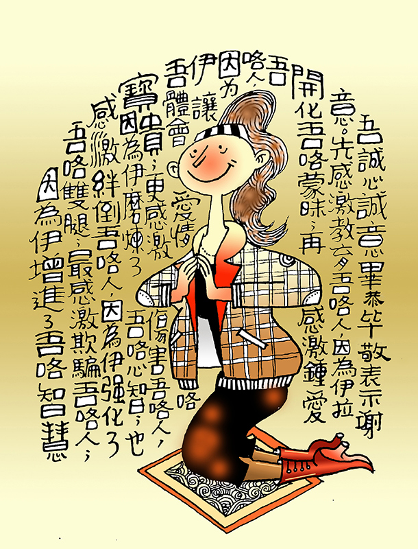 吾诚心诚意毕恭毕敬表示谢意,先感激教育吾咯人,因为伊拉开化吾咯蒙昧;再感激钟爱吾咯人,因为伊让我体会爱情咯宝贵;更感激伤害吾咯人,因为伊磨炼了吾咯心智;也感激绊倒吾咯人,因为伊强化了吾咯双腿;最感激欺骗吾咯人,因为伊增进了吾咯智慧。