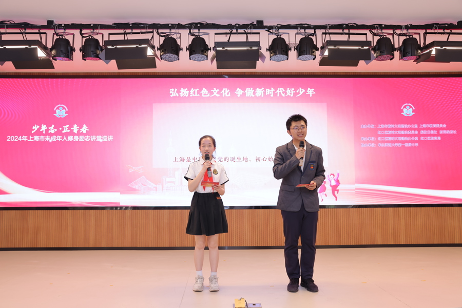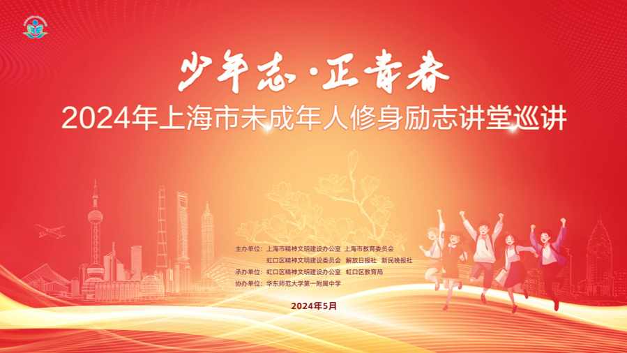 5月30日下午,以“少年志 正青春”为主题的2024年上海市未成年人修身励志讲堂巡讲首场暨虹口专场活动在华东师范大学第一附属中学举行。
