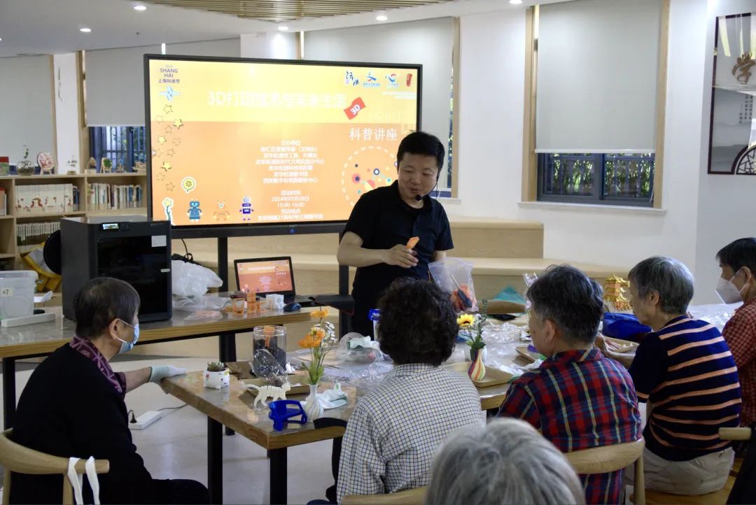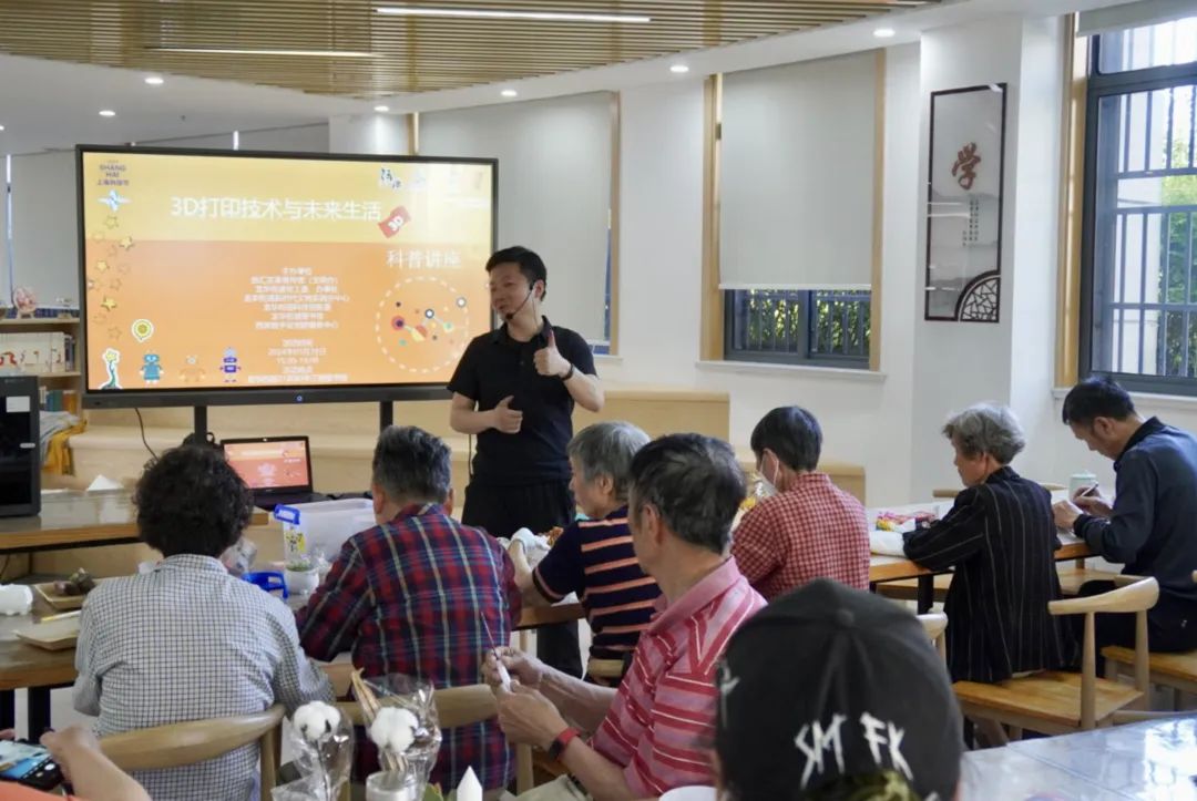 讲解老师强调了“3D打印”在医疗、建筑、教育等多个行业中的广泛应用。讲师还详细介绍了3D打印的完整流程,包括模型设计、切片处理、打印输出等关键步骤,让居民对3D打印技术的运作机制有了更为直观的了解。