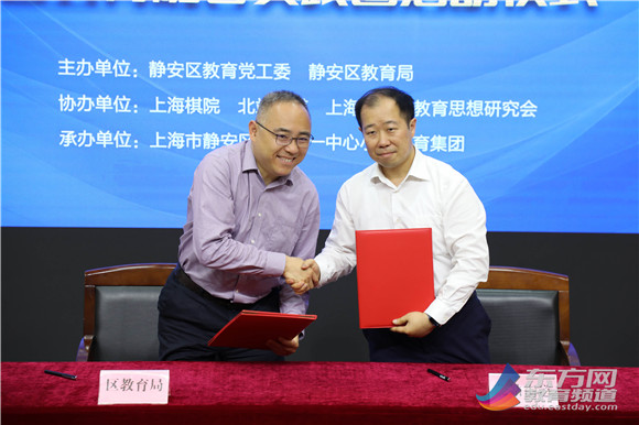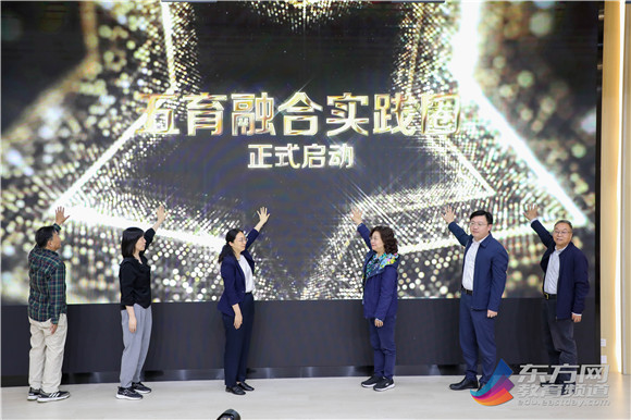 静安区教育党工委书记余文君,中国象棋协会副主席、上海市象棋协会会长单霞丽,上海棋院(上海市棋牌运动管理中心)党支部书记欧阳琦琳,北站街道党工委书记姚磊,原上海师资培训中心党委书记韦高安,上海陈鹤琴教育思想研究会常务副会长胡道明等领导上台,共同启动了五育融合实践圈的建设工作,现场气氛达到了高潮。