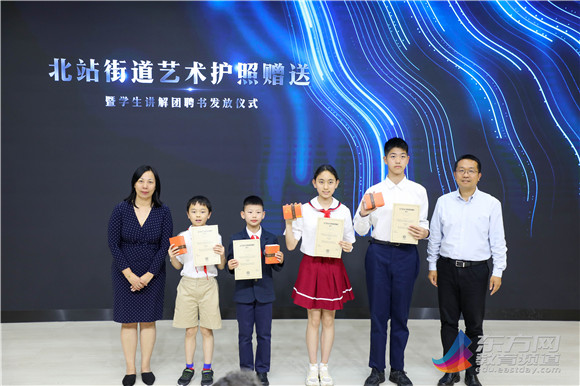 作为实践圈建设中的重要一环,北站街道以“艺术苏河”品牌为抓手,率先推出一系列相关举措。北站街道办事处副主任王天正、Fotografiska影像艺术中心中国区业务发展公共事务总监江美玲女士向北站街道辖区内四所中小学学生代表赠送了《北站艺术观赏护照》,并颁发了第一批讲解团志愿者聘书。这一动作旨在引导辖区内中小学生积极参与社会实践,提升他们的综合素质。