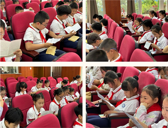 一封信笺,字句真切;一纸家书,满含温情。在这个特殊的日子里,父母把无限的爱与关怀浓缩为一纸深情的家书,薄薄信纸承载的是诉不完的沉甸甸的爱。在悠扬的音乐声中,队员们静静地品读着,有笑意盈盈的,也有感动落泪的,有细细品味的,也有欣然分享的。